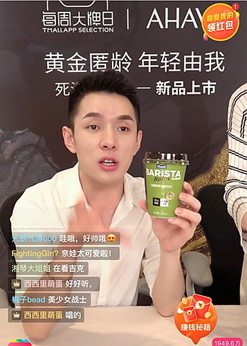 타오바오 라이브 방송에서 바리스타룰스 무유당 로어슈거라떼를 소개한 왕홍은 ‘리챠지’로, 그는 ‘립스틱 오빠’라는 별명으로 알려져 있으며, 꼼꼼한 제품 소개 및 생생한 체험기로 2497만구독자를 거느리고 있어 중국 내에서도 몸값이 가장 비싼 온라인 쇼핑 호스트로 유명하다.