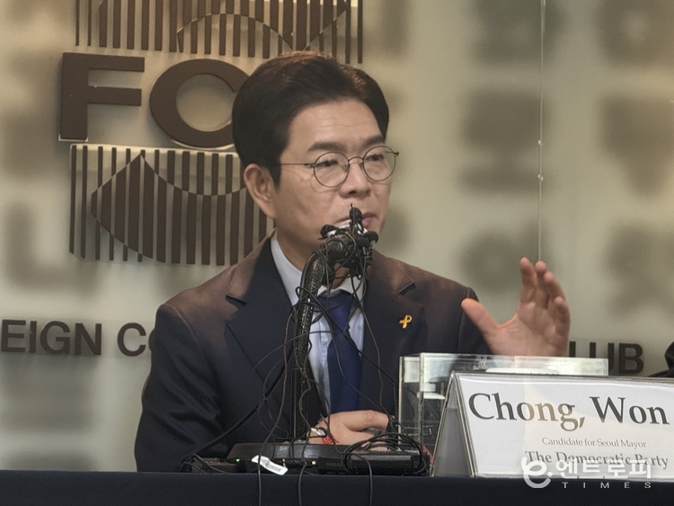 정원오 후보는 16일(서울 시간) 서울외신기자클럽(SFCC)와 가진 커피브리핑에서 “중앙정부의 국토균형개발정책과 서울발전이 충돌되는 않겠느냐”는 일본 언론사 기자의 질문에 “서울은 이제 과거에 대한민국의 블랙홀이라는 오명이 있었지만 이제는 서울은 대한민국의 입구”라고 답했다. 또 “해외에서 많은 인재와 자본, 기업들이 서울로 들어와 전국으로 퍼져나가는 관문 역할”이라고 덧붙였다. 특히 “행정수도가 세종에 세워지면 서울은 경제, 문화 수도의 기능을 하게 될 것”이라고 강조했다.