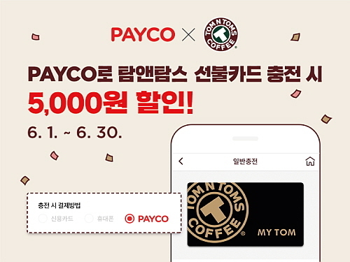 먼저 탐앤탐스는 간편결제 전문 기업 NHN페이코와 손잡고 탐앤탐스 공식 앱 마이탐에 ‘페이코(PAYCO)’ 간편결제 시스템을 최근 도입하고 이를 기념해 6월 30일까지 마이탐 충전 할인 프로모션을 진행한다.