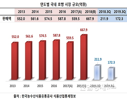 [산업경제뉴스 민혜정 기자] 겨울철 대표 간식인 호빵의 이색 신제품을 다양하게 선보인 전략이 주효, 지난 2018년 시장규모(소매판매액)가 2013년 이후 사상 최대치를 기록한 것으로 조사됐다.