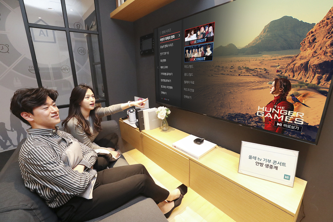 이로 인해 실내에 머무르는 시간이 길어진 국민들을 위해 KT가 마마무, 김재환, 에이프릴, 비오브유(B.O.Y) 등의 공연을 ‘우리 집’, ‘내 모바일’을 통해 생중계로 서비스한다.