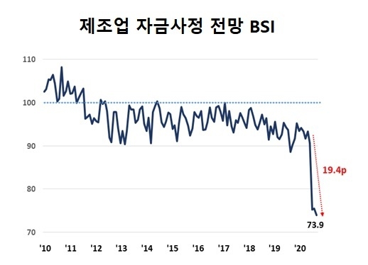 하락세가 상승세로 전환됐지만, 여전히 70 선에 머물러 기업들의 어려움은 계속되고 있는 것으로 분석된다.