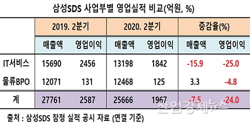삼성SDS 2Q 외형·손익 역주행..코로나19에 ‘휘청’