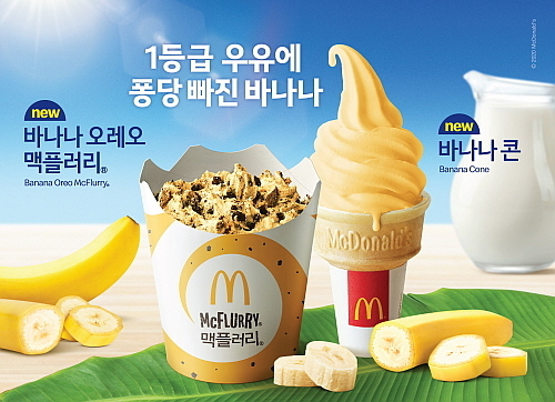 먼저 포문을 연 곳은 맥도날드다. 지난 6월 뜨거운 여름을 앞두고 신선한 1등급 원유로 만든 달콤한 디저트 메뉴 ‘바나나콘’과 ‘바나나 오레오 맥플러리’를 선보인 것.