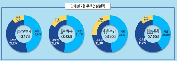 국토교통부가 30일 발표한 2020년 주택분양 실적을 보면 7월에 전국적으로 5만 8866 가구가 분양되어 작년 7월 2만 2810 가구보다 158.1%나 증가했다.