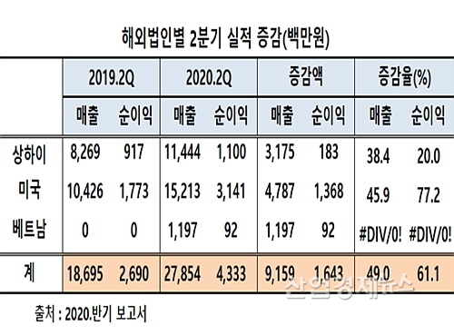 이뿐만이 아니다. ‘상하이·미국·베트남’ 등 3개 해외법인의 호 실적까지 가세하며, 전사 실적 향상에 힘을 보탰다.
