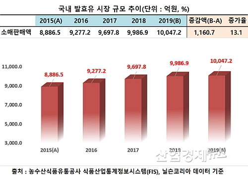2019년 발효유 소매판매 1조47억 시현...1조 시대 열어