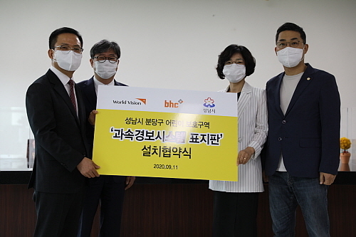 먼저 bhc치킨은 지난 11일 임금옥 bhc 대표를 비롯해 한상호 월드비전 나눔본부장, 고혜경 분당구청장, 김명수 성남시의회 의원 등이 참석한 가운데, 성남시 분당구와 과속경보시스템 표지판 설치 협약식을 체결, 어린이 교통안전 환경 조성을 위한 행보를 이어갔다.