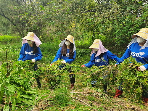 이날 서울 영등포구 여의샛강생태공원에서 생태계 교란을 일으키는 유해식물 제거와 쓰레기 수거 등 환경정화에 부족한 일손을 보탠 것.