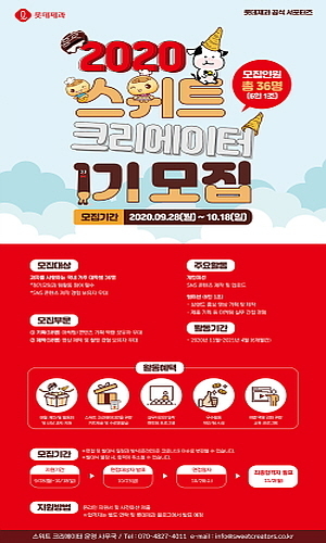 [산업경제뉴스 민혜정 기자] 롯데제과(대표 민명기)가 젊은 소비자들과 소통을 강화하고, 브랜드를 함께 키워 나가기 위해 공식 서포터즈인 ’2020 스위트 크리에이터’ 1기를 모집한다.