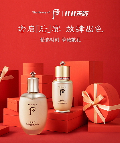 행사 열기가 최고조에 달하는 광군제 당일까지 메인 페이지에 대표 제품 ‘후 비첩 자생 에센스’ 조형물이 궁과 어우러진 영상을 통해 브랜드 이미지를 높이고 이목을 집중시킬 예정이다.