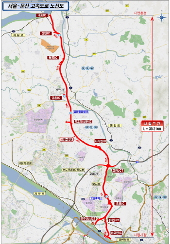 이 도로는 경기 고양시 덕양구 강매동에서 파주시 문산읍 내포리를 연결하는 총 연장 35.2km, 왕복 2~6차로 도로로 총 투자비 약 2조1190억원이 투입됐다.