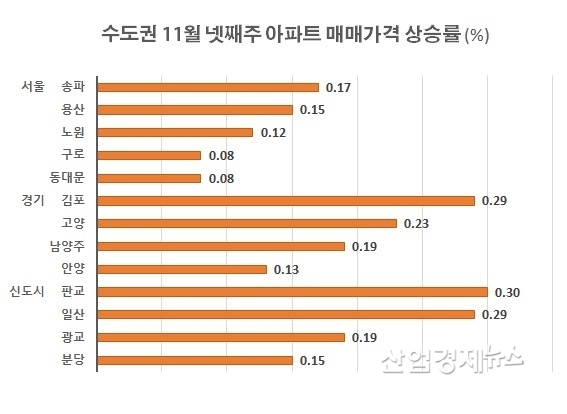 경기인천 지역은 9월 0.04%에서 10월말 0.10%로 상승세를 키우고 11월 말까지 이러한 상승세를 유지하는 모습을 보이고 있다.
