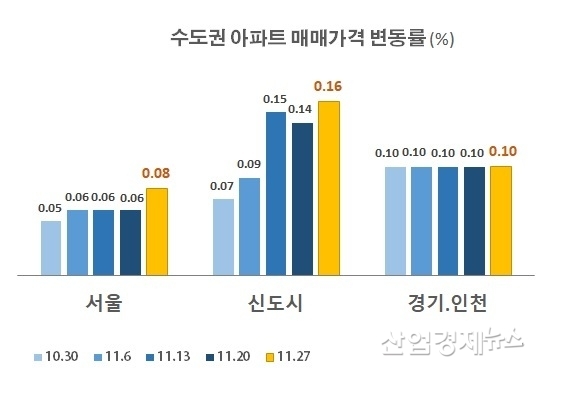 서울 아파트 매매가격은 지난 8월 이후 주간 상승률이 0.04%까지 떨어지면서 안정세를 보이는 듯 했다. 전세가격이 치솟던 11월 들어서도 0.06%를 보이며 다소 오르긴 했지만 여전히 보합세라는 평가를 받았다.