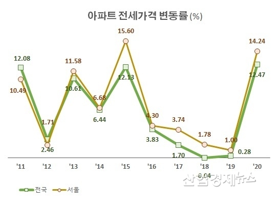 전국 전세가격은 지난해 12.47% 상승하면서 10년래 최고의 상승률을 기록했다. 더우기 이러한 상승세는 임대차3법이 시행된 8월 이후 급격히 나타나서 집없는 서민들의 혼란과 고통이 극심해졌다.