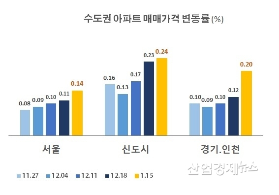 경기인천지역은 지난해 12월만해도 주간변동률이 0.12%였는데 올해로 들어서면서 0.20%까지 상승세가 올라갔다.