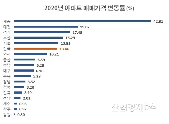 한편, 2020년 한 해 동안 전국 아파트가격은 13.5% 상승한 것으로 조사됐다.