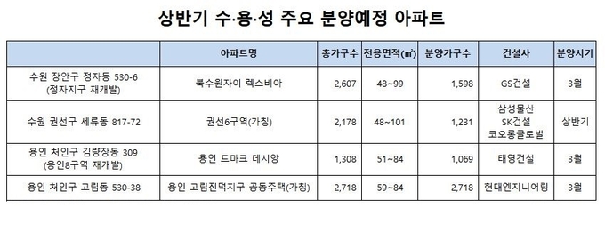 [산업경제뉴스 최기훈 기자] 지난해 서울 '마용성(마포, 용산, 성동)'과 함께 아파트 분양열기를 이끌었던 수도권 '수용성(수원, 용인, 성남)이 올해도 분양열기를 이어갈 것으로 보인다.