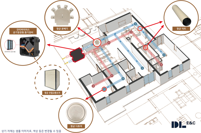 DL이앤씨(舊대림산업)는 16일, ‘세대 환기 항균 토탈 패키지’ 기술을 개발해 특허출원을 완료했다고 밝혔다. 환기시스템 전체를 항균기능으로 무장해 세균과 바이러스가 닿기만 하면 제거되는 방식이다.