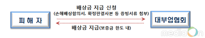 대부업체로부터 손해를 입은 자는 다음과 같은 절차를 통해 배상금을 지급받을 수 있게 되고, 대부업체는 대부영업이 종료한 이후 보유 중인 대부채권이 없는 경우에는 협회에 보증금의 반환을 청구할 수 있으며, 협회는 공고절차 등을 거쳐 보증금을 반환하도록 한다.