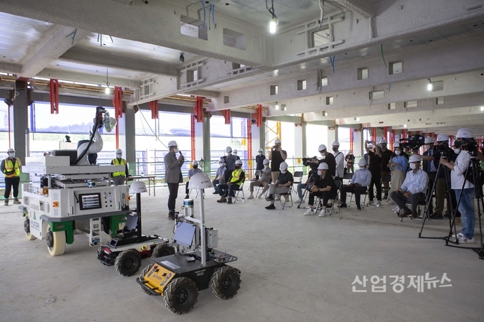 [산업경제뉴스 최기훈 기자] 현대건설이 22일 경기도 성남시 소재 ‘현대중공업 글로벌R&D센터’ 현장에서 건설로보틱스 기술 시연회를 선보였다.
