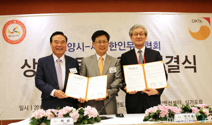 이날 고양시, 월드옥타, 킨텍스는 ‘청년일자리 창출, 해외 취업, 청년해외창업, 기업 해외시장 진출’ 프로그램 운영을 위한 업무 협약식을 체결했다.