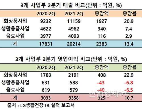 2Q 손익, 화장품사업 선전 돋보여..‘생활용품·음료’사업 역신장 상쇄하고 10.7% 증가세 이끌어