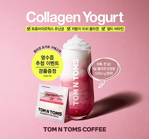 [산업경제뉴스 민경종 기자] 토종 커피전문점 탐앤탐스가 다양한 경품을 증정하는 ‘콜라겐 요거트’ 프로모션인 ‘Daily Drink, Collagen Yogurt’에 초대했다.