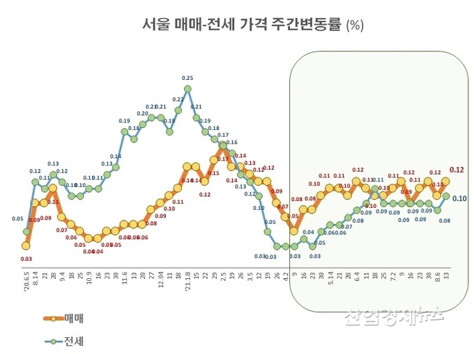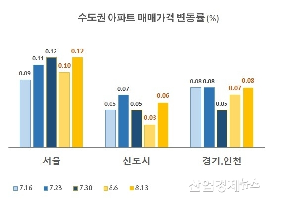 [산업경제뉴스 문성희 기자] 7월 하순과 8월 초, 코로나19와 폭염, 휴가철이 겹치면서 수도권 아파트 가격이 주춤하는 모습을 보였었지만, 지난주에는 매매도 전세도 모두 다시 증가율이 확대되면서 상승세에 다시 불이붙었다.