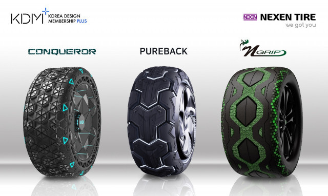 이 타이어는 미래 콘셉트 타이어 3종 △캉커러 △퓨어백 △엔그립을 한국디자인진흥원의 KDM+ (Korea Design Membership Plus) 소속 제품디자인 분야 전공 9명의 학생과 협업해 제작했다고 밝혔다.