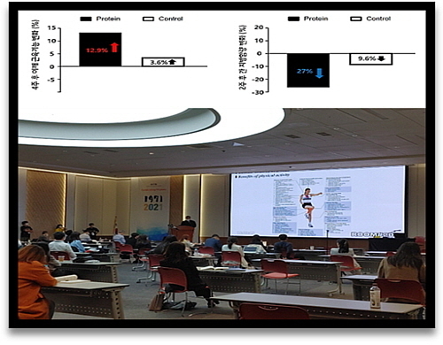 매일헬스뉴트리션(대표 김환석) 사코페니아연구소가 근감소 예방의 중요성을 확인하기 위해 부산대 스포츠과학부 박정준 교수 연구팀과 진행한 '유청 단백질 섭취와 저항운동의 상관관계'에 대한 연구결과를 지난달 28일 2021년 한국식품영양과학회 정기학술대회에서 발표한 것.