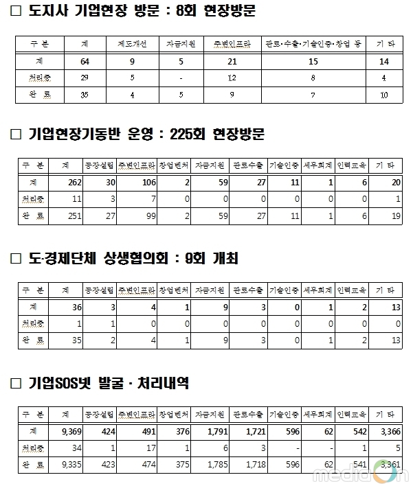 (미디어온) 경기도가 지난 한 해 동안 9,731건의 기업애로를 접수했으며 이 가운데 총 9,656건을 조치 완료했다고 17일 밝혔다.