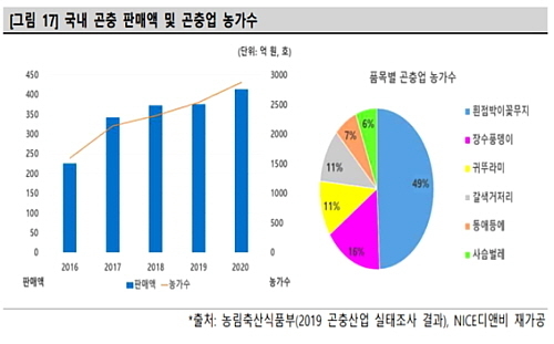 (주)NICE디앤비 김슬기 전문위원이 최근 발표한 '곤충사육'(부제 미래 신성장 산업, 대체식품으로 주목) 보고서에 따르면