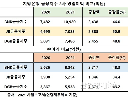 지방銀 금융지주 3사, 2021년 장사 누가 더 알찼나?