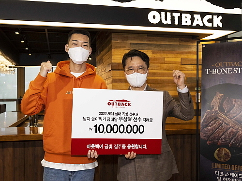 아웃백, 높이뛰기 우상혁 선수에 격려금 1,000만 원 전달