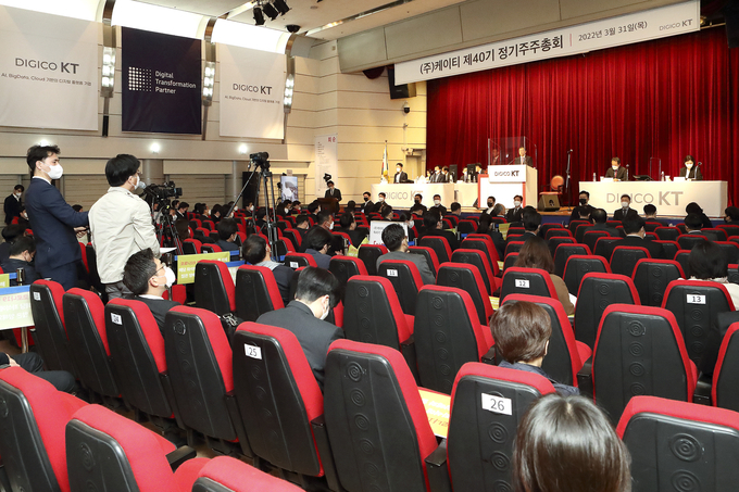 [산업경제뉴스 강민구 기자] KT(대표이사 구현모, www.kt.com, 종목코드 030200)가 31일 오전 9시 서울 서초구 태봉로 KT연구개발센터에서 제40기 정기 주주총회를 개최했다.