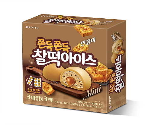 회사 측 설명에 따르면 이번에 출시한 ‘찰떡아이스 인절미’는 떡, 아이스믹스, 시럽의 3중 구조가 특징. 3중 포앙 기술을 적용, 쫄깃한 찰떡 안에 인절미 고물, 검은깨 등이 섞인 아이스크림이 들어있으며 그 안에 콩맛 시럽을 첨가하여 리얼한 인절미 맛을 즐길 수 있다.