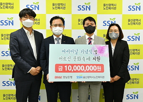 이뿐만이 아니다. BNK경남은행은 5월 가정의 달을 앞두고 울산광역시노인복지관(관장 김태한)에 ‘제50회 어버이날 및 어르신문화축제 후원금’도 기탁했다.