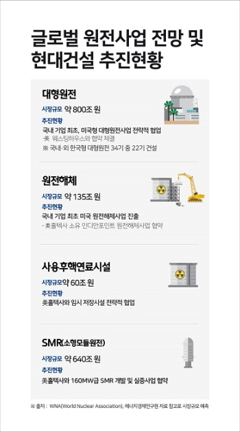 [산업경제뉴스 최기훈 기자] 현대건설이 원자력 원천 기술 확보를 비롯한 전 분야로 사업 영역을 확장하며 글로벌 진출을 가속화하기 위한 차세대 원전사업 로드맵 전략에 본격적인 시동을 걸었다.