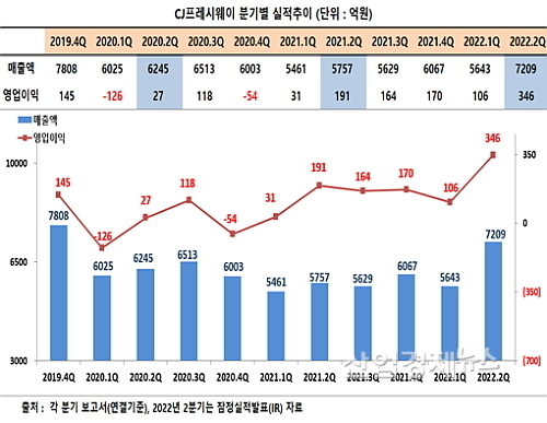 [산업경제뉴스 민경종 기자] CJ프레시웨이가 올 2분기 외식/급식 관련 식자재유통과 단체급식사업부의 쌍끌이 선전에 힘입어 외형성장과 함께 창사 최대 영업이익을 일궈낸 것으로 나타났다.