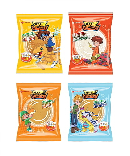 ‘아구몬의 허니크림빵’, ‘텐타몬의 고소한 땅콩샌드’, ‘파닥몬의 마롱호떡’, ‘파피몬의 파인애플케이크’ 등 4종으로 출시됐으며, 182종의 디지몬 띠부씰이 무작위로 들어있어 인기가 높을 것으로 롯데제과 측은 기대하고 있다. 권장소비자가격은 각 1500원이다.
