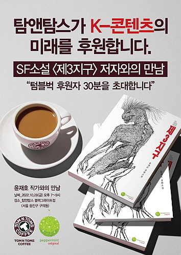 현재 소설 ‘제3지구’는 크라우드 펀딩 사이트 텀블벅에서 첫 후원자를 만나고 있다. 탐앤탐스는 펀딩 종료 후 후원자들을 위한 저자와의 만남 행사에 공간과 음료 지원은 물론, 텀블벅 후원자들을 대상으로 한 경품 이벤트도 진행할 예정이다.