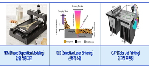 또한 식품 제조에 적용 가능한 3D 프린팅 기술은 FDM(Fused Deposition Modeling), SLS(Selective Laser Sintering), CJP(Color Jet Printing) 등이 있는데,