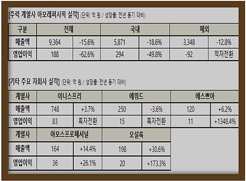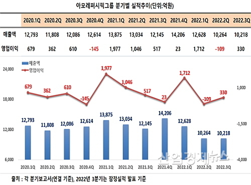 [산업경제뉴스 민경종 기자] 아모레퍼시픽그룹(아모레G)의 3분기 영업실적이 중국 주요도시 봉쇄 지속에 따른 현지매출 급감과 면세채널 부진이라는 직격탄에 휘청, 외형과 손익이 동반 감소한 것으로 밝혀졌다.