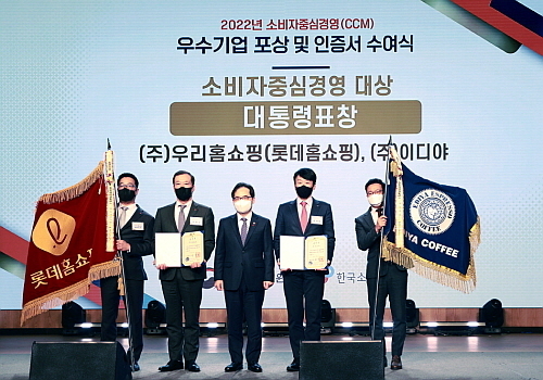 [산업경제뉴스 민경종 기자] 이디야커피가 지난 9일 롯데호텔에서 열린 2022년 소비자중심경영(CCM) 우수기업 포상 및 인증서 수여식에서 CCM 재인증 획득과 정부 포상 중 최고 훈격에 해당하는 대통령 표창을 수상했다고 밝혔다.