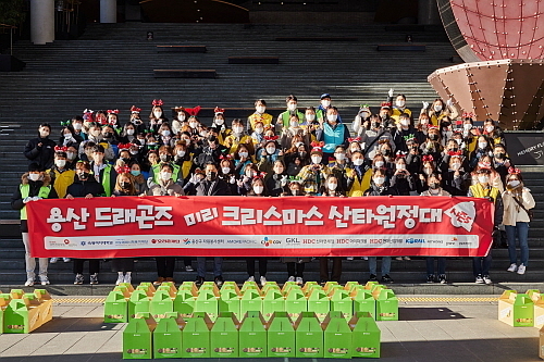 ‘미리 크리스마스 산타 원정대’는 용산 드래곤즈 회원사가 연말마다 지역 어린이들에게 선물과 응원의 메시지를 전달하며 올해로 5년째 활동을 이어가고 있다. 행사에 참여한 100여 명의 봉사자들은 각 회원사에서 준비한 생활용품과 학용품, 과자류 등을 메시지 카드와 함께 9개의 아동시설 및 200여 명의 어린이들에게 전달했다.