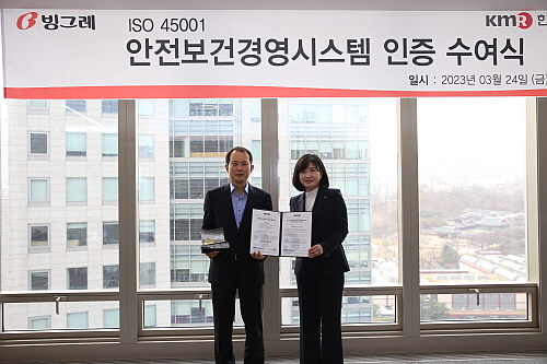 이뿐만이 아니다. 빙그레는 같은 날 한국경영인증원(KMR)으로부터 안전보건경영시스템(ISO 45001) 인증도 획득했다.