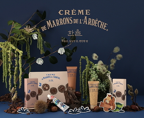 충남 부여산 무농약 밤 껍질을 넣어 만든 한율 대표 모공팩 ‘부들밤’ 라인과 프랑스 남부 리옹 지역의 야생밤을 원료로 하는 밤잼 브랜드 ‘크렘드마롱’이 밤 본연의 건강함으로 일상 속 휴식을 지향한다는 공통 가치로 함께 했다.