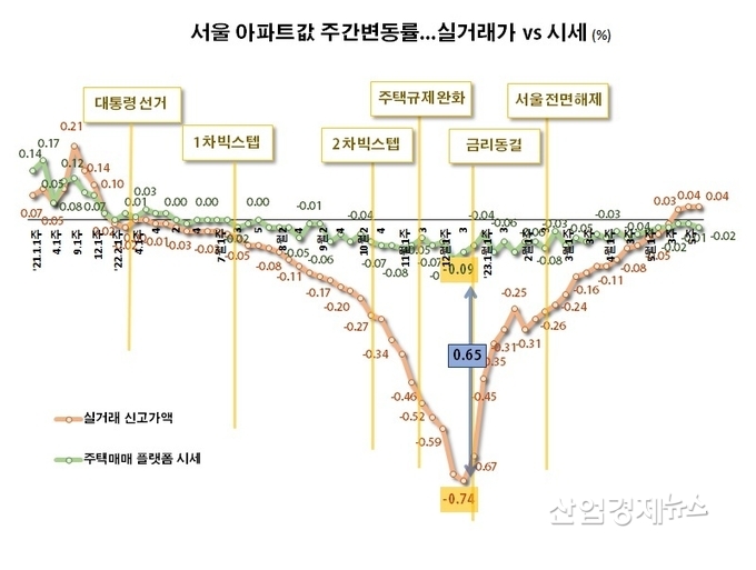 매주 주택매매 플랫폼 시세를 중심으로 수도권 아파트가격을 조사하고 있는 부동산R114는 "강남권의 오래된 아파트와 마포 준신축 대단지 아파트 등이 상승된 가격으로 거래가 체결되면서 전체 상승세를 이끌었지만 서남권과 동북권은 여전히 약세를 보이고 있다"고 시장의 혼조세를 설명하면서,