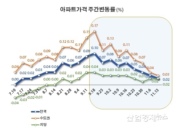 전국 주요 시도 주간변동률 (11월 13일 기준, %)